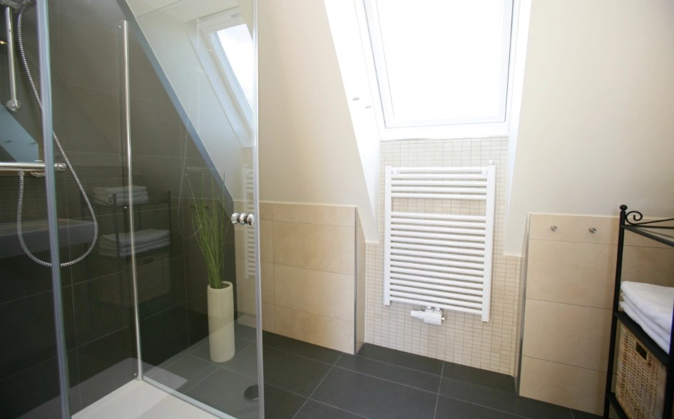 Living at the top has certain advantages. Like a balcony that no one can see onto. There you can have a private breakfast or enjoy a glass of wine in the evening. On a playful 70m2 you can enjoy your holiday with your partner completely. Kitchen, bathroom, balcony - everything is there.
